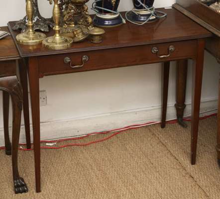 of George III style, the moulded rectangular top above a frieze drawer, on square tapering legs