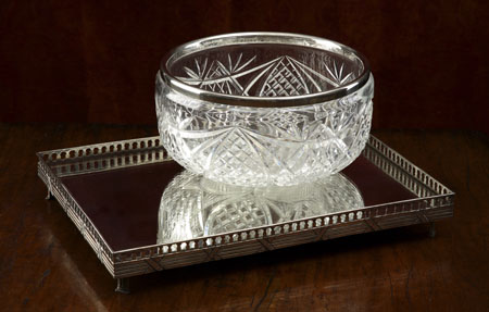 with mirrored base, 50cm long; and a large Regency style cut glass bowl, with silver plated edge, 30cm diameter (2)