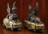 each seated on moulded oval pedestals with husk and flowerhead decoration, on toupee feet, formerly part of a larger item (2)