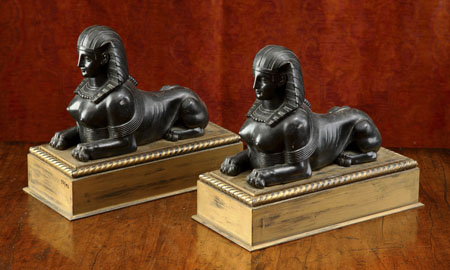 each in the form of a sphinx on rope twist edged plinth (2)