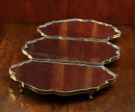 in three sections, the shaped D-form end sections enclosing a central section, on short tapered feet