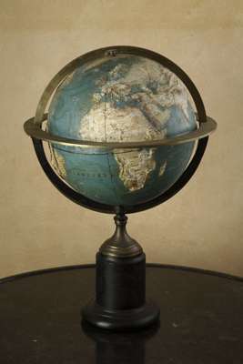modelled in relief, on a brass stand and ebonised column and plinth base, labelled, ‘Globe Terrestre en relief par M Vivien de Saint Martin Paris, Lebrairie de Hachette and Cie. 77 Boulevard Saint Germain’
