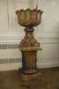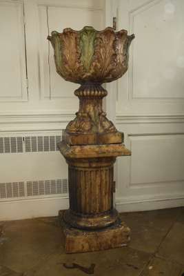the acanthus leaf body on a reeded and conforming leaf spreading foot, the fluted column pedestal with a square base