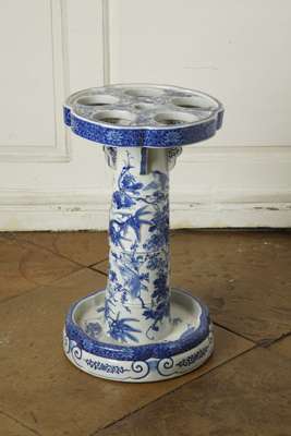 A Japanese blue painted ceramic umbrella stand