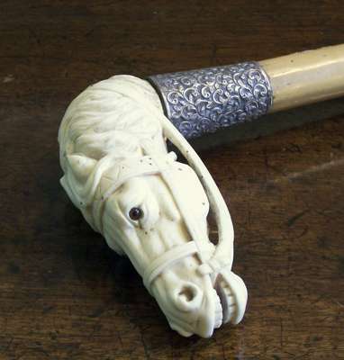 with carved ivory horse’s head handle and silver collar engraved ‘1913’