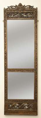 each with two rectangular mirror plates with floral carved spacer bar between and in similarly carved frame, with pierced acanthus carved panels above and below and acanthus carved surmount (2)