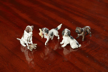 seated with a dead curlew at its feet, 6cm high, another carrying a duck; a spaniel; and a boxer (4)