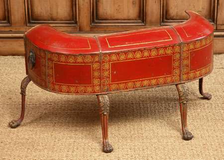 of bowfront form, with interlaced anthemion painted banding and side ring handles, on acanthus cabriole legs with claw feet