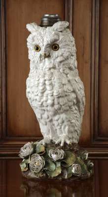seated on a flower encrusted base, with oil lamp fitting to the head, printed registration mark