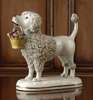 standing with a polychrome flower basket in its mouth, on a rectangular plinth (restuck)