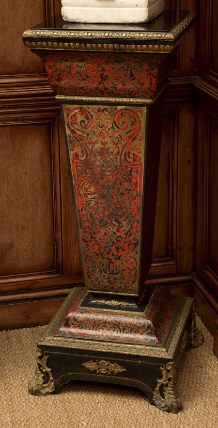 A 19th century French marble topped tortoiseshell, brass and ebonised boulle marquetry pedestal plinth