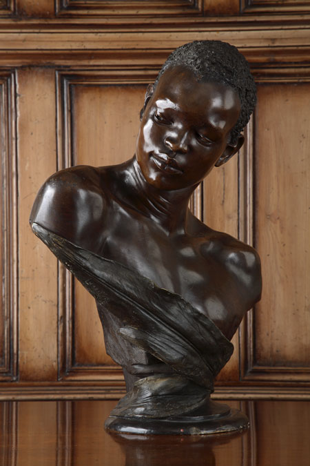 A late 19th/early 20th century Austrian painted terracotta bust of a Nubian boy