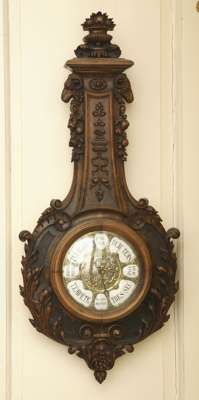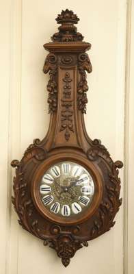 A late 19th century French walnut banjo clock and barometer pair