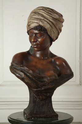 A late 19th/early 20th century Austrian painted terracotta bust of a Nubian girl by Goldscheider