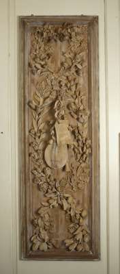 probably Swiss or German, carved in high relief with musical trophies flanked by swags of trailing flowers and fruit in moulded frames (2)