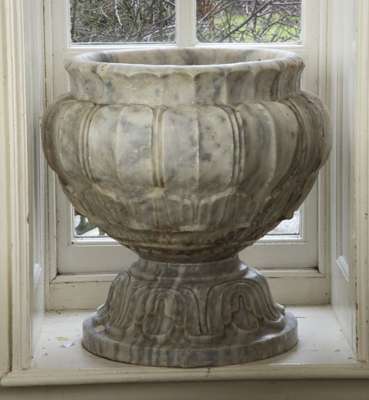 each with stiff lotus petal shaped bowls raised on waisted acanthus carved socle, 62cm high (2)