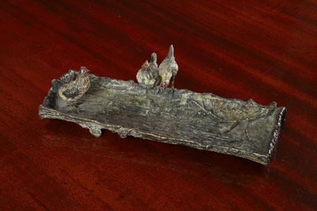 in the form of three hens on a bark trough, stamped ‘GESCHUTZT’