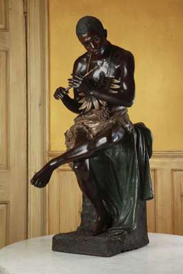 A late 19th/early 20th century Austrian painted terracotta figure of a seated Nubian by Goldscheider
