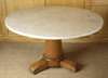 the veined white marble oval top on tapering cylindrical column on three scrolled square legs