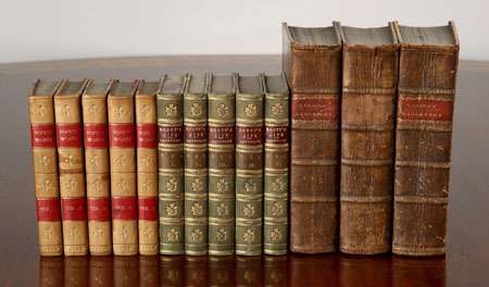 The Works, 1812, 8 volumes, 12mo, contemporary calf, neatly rebacked; The Glasgow Geography, 1825, 5 volumes, 8vo, folding maps, contemporary calf, slightly rubbed; Lockhart, J.G.,Memoirs of the Life of Sir Walter Scott, 1862, 10 volumes, 8vo, contemporary half calf, spines gilt (23)