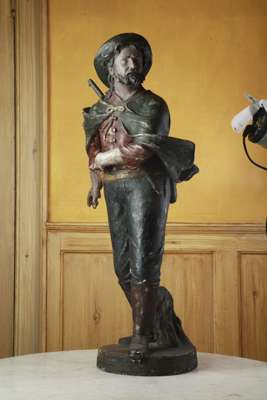 An Austrian painted terracotta figure of a bearded huntsman