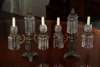 each with triform base with triple stylised dragons upholding central spiral pillar with pendant drops, the dragon scroll arms with conforming drops (2)