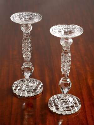 each with flared circular diamond cut drip tray above knopped diamond cut stem and circular foot (4)