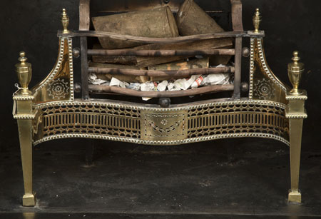 of George III style, the serpentine front with urn finials and pierced frieze, on square tapering legs with block feet