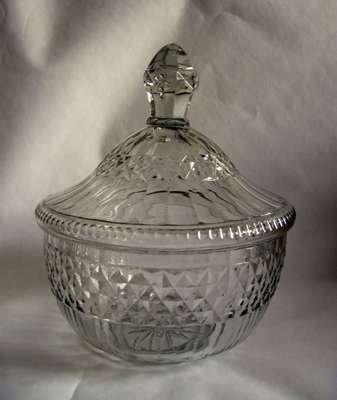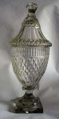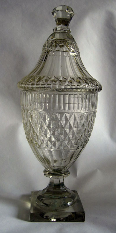 possibly Irish, diamond cut, 20cm diameter; and a similar urn shaped vase and cover, 35cm high (2)