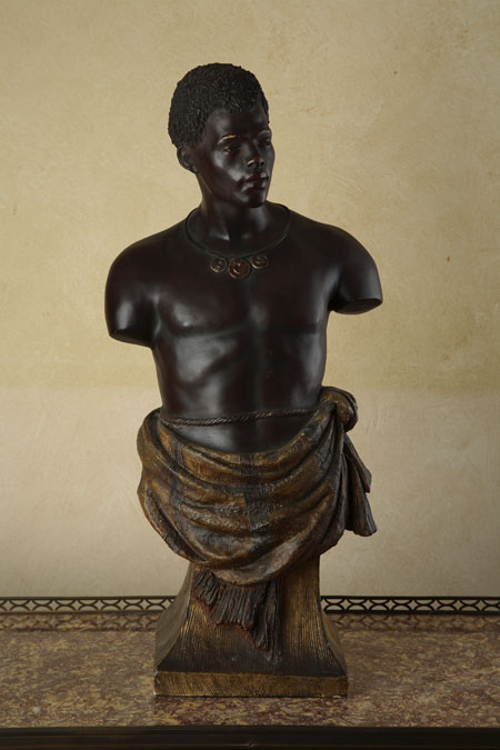 A late 19th/early 20th century Austrian painted terracotta bust of a Nubian boy