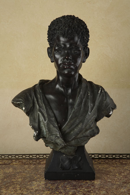 A late 19th/early 20th century Austrian painted plaster bust of a Nubian boy