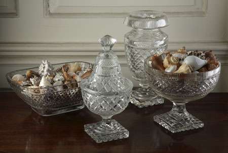 23cm diameter; a diamond cut rectangular bowl, 31cm wide; a diamond cut urn shaped vase with everted rim, 31cm high; and a diamond cut circular bowl and cover with square foot, 14cm diameter (4)