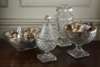 A large strawberry cut glass footed bowl