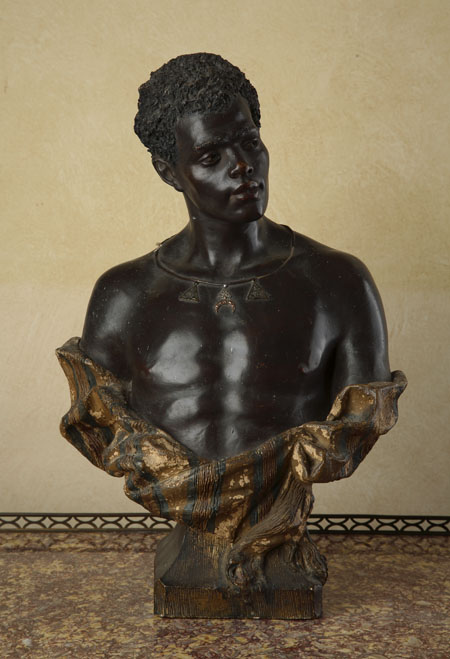 A late 19th/early 20th century Austrian painted terracotta bust of a Nubian boy