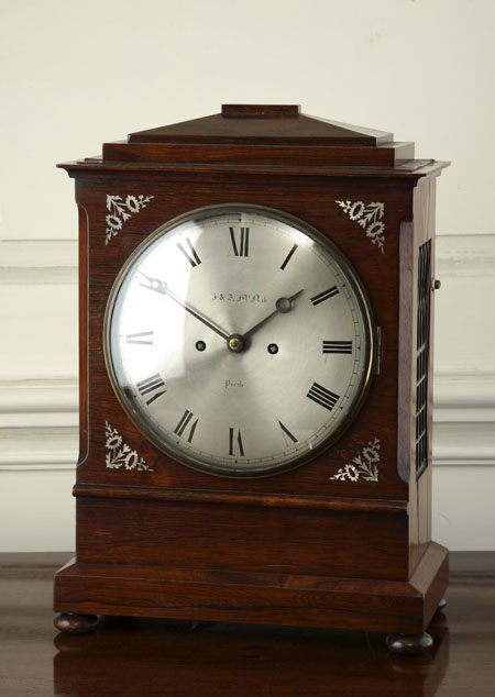 A mid 19th century Scottish rosewood and mother-of-pearl inlaid bracket clock