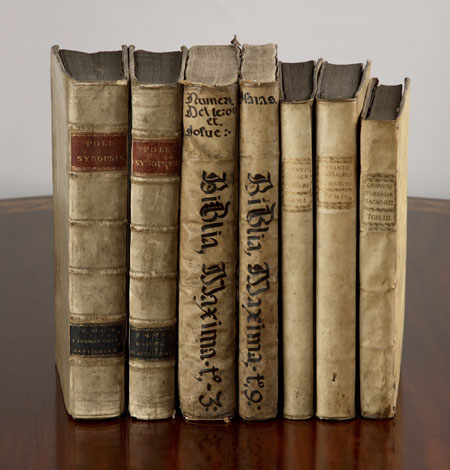 Synopsis criticorum aliorumque sacrae scripturae interpretum. Utrecht, 1686, 5 volumes, folio, contemporary vellum, joints of 2 volumes splitting; Biblia Maxima, Paris, 1660, folio, 6 volumes only, contemporary vellum, occasional dampstaining, some text leaves worn with loss; Gavantus, B. Thesaurus sacrorum ritum, Venice, 1769, 2 volumes, folio, contemporary vellum; and 4 others (17)