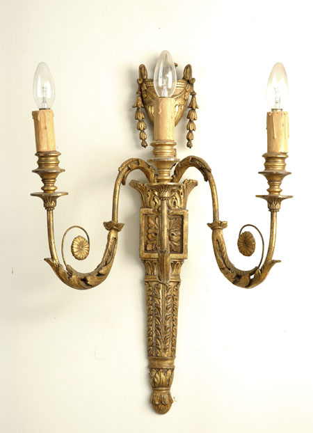 A pair of late 19th century giltwood wall lights