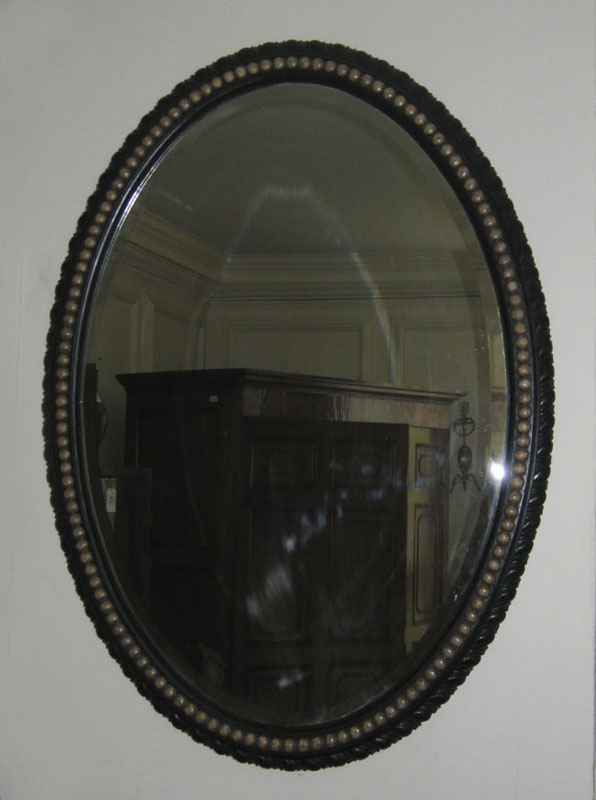 An ebonised and silvered oval wall mirror