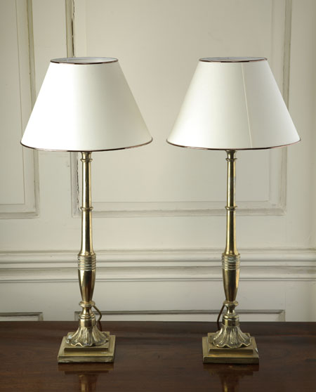 each with baluster stem on splayed leaf form base, with stepped plinth (2)