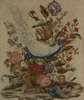 depicting a peacock on a floral basket, within a gilt slip and moulded rosewood veneered frame