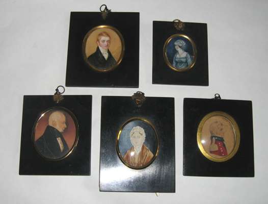 A group of five early 19th century portait miniatures