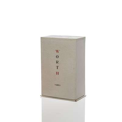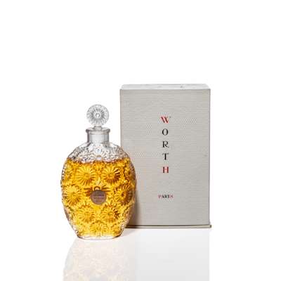moulded R. LALIQUE FRENCH BOTTLE, applied paper label JASMIN WORTH PARIS, box printed WORTH PARIS