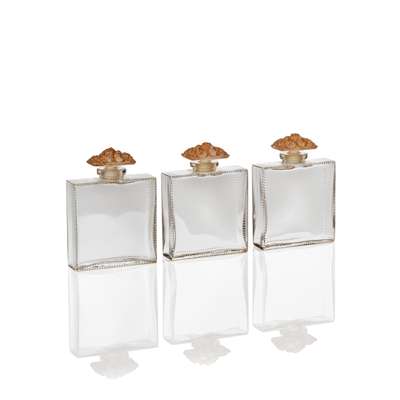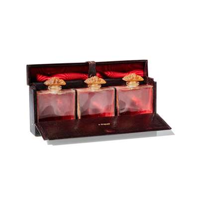 each bottle engraved R. Lalique, case gilt embossed D'ORSAY