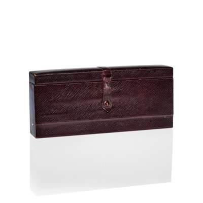 clear, frosted and sepia stained, black leather case