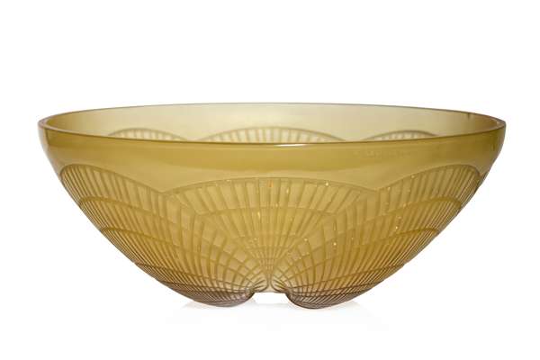 The size of this piece would suggest that it was a plafonnier, however, it has been used as a bowl. The piece is bigger than the bowls listed in the catalogue raisonné.