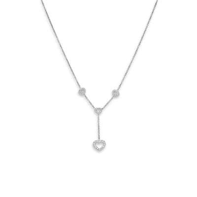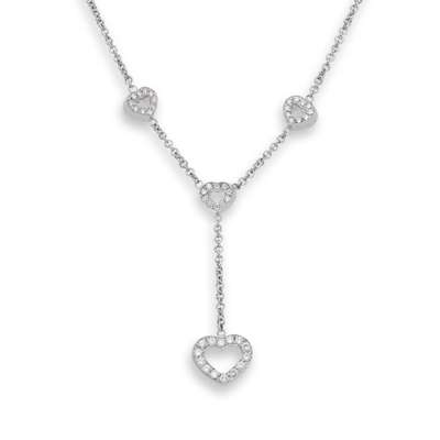 The 18 carat white gold trace-link chain, with three openwork double-sided brilliant-cut diamond hearts, suspending a larger similarly designed pendant drop, diamonds approx. 1.70 carats total, partial UK hallmark, lengths: pendant 3.4cm, necklace 46.2cm