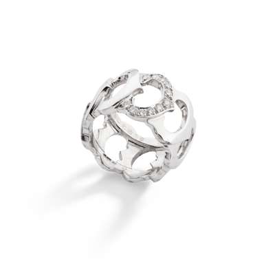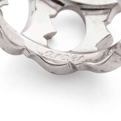 Designed as a continuous row of overlapping 18 carat white gold wide 'C' motifs, one motif pavè-set with brilliant-cut diamonds, signed Cartier, maker's mark, numbered, later UK hallmark, French assay mark, ring size L½ (Cartier size 52), maker's pouch