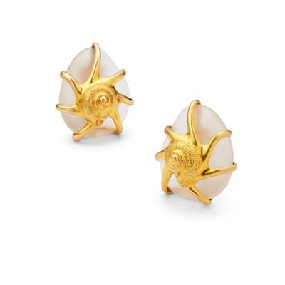 Lalaounis: A pair of gold and rock crystal 'Seashell' earclips, 1985