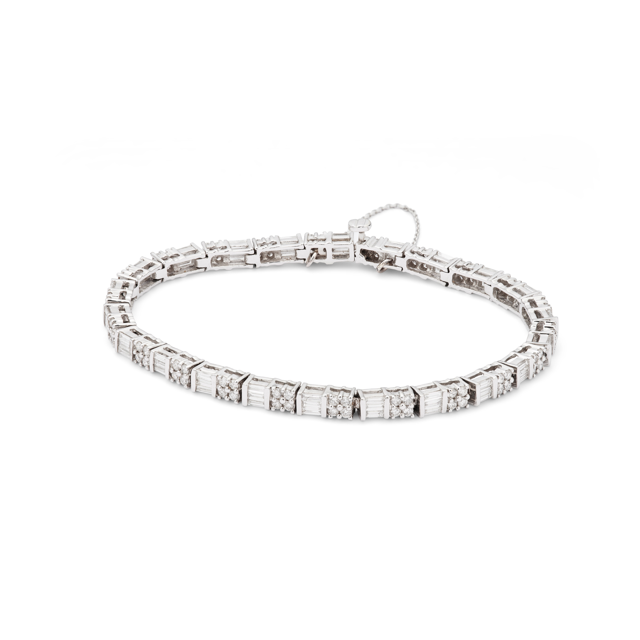 The line of alternating links set with clusters of brilliant-cut or baguette-cut diamonds, diamonds approx. 4.60 carats total, length 18.3cm