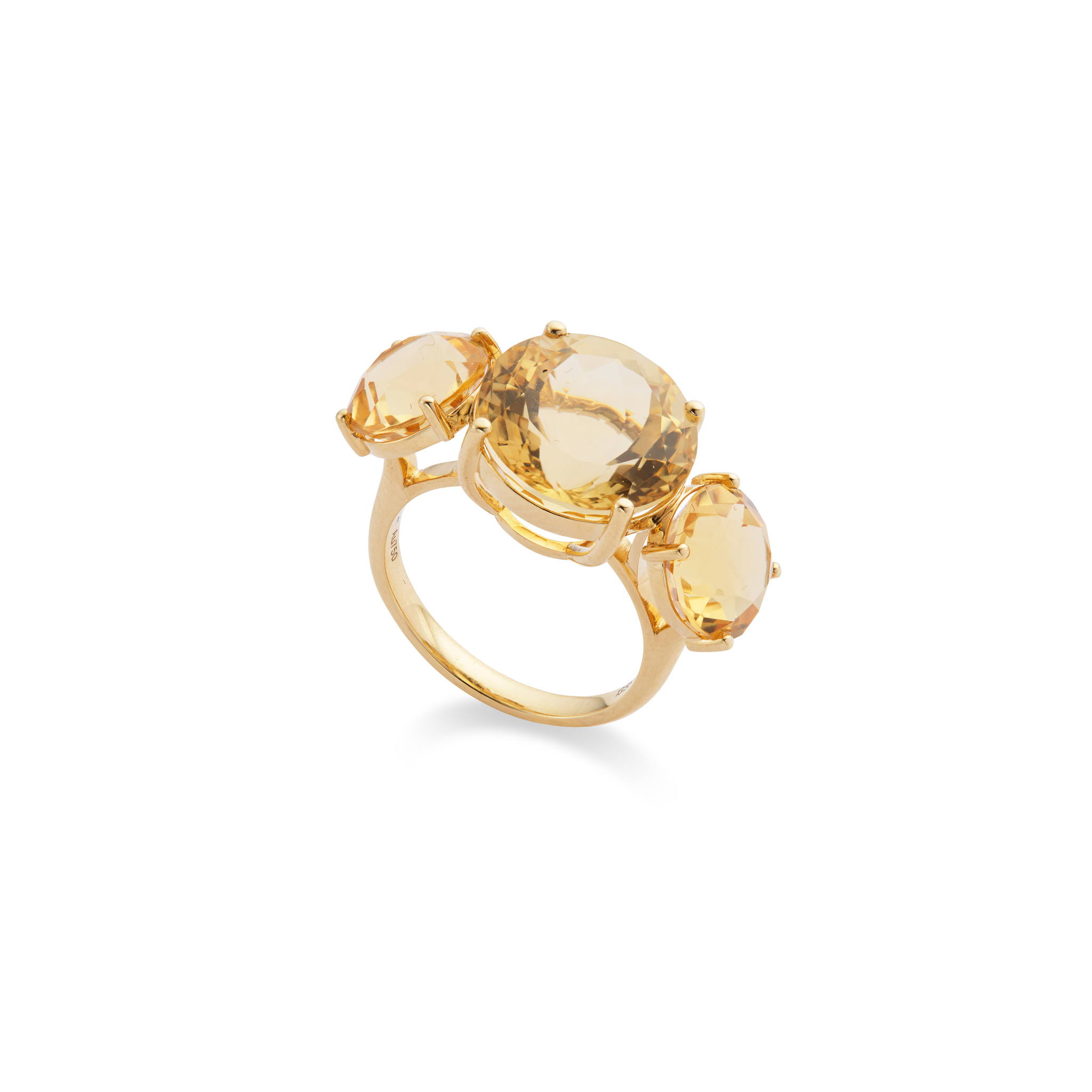 A citrine three-stone ring